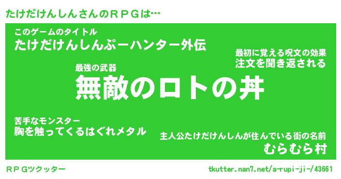 | 伝説のあだ名 | 『封印されし竜騎士たけだけんしん』 |