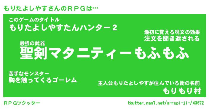 | 胡散臭い通販商品みたいなあだ名 | 『必ず成功する霊験あらたかなお札…その名も「もりたよしやす」』 |