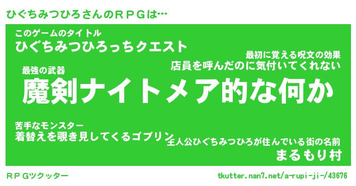 | 男性向けラノベタイトル風あだ名 | 『ひぐちみつひろの憂鬱』 |