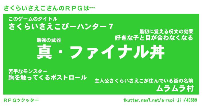 | 伝説のあだ名 | 『封印されし傭兵さくらいさえこ』 |