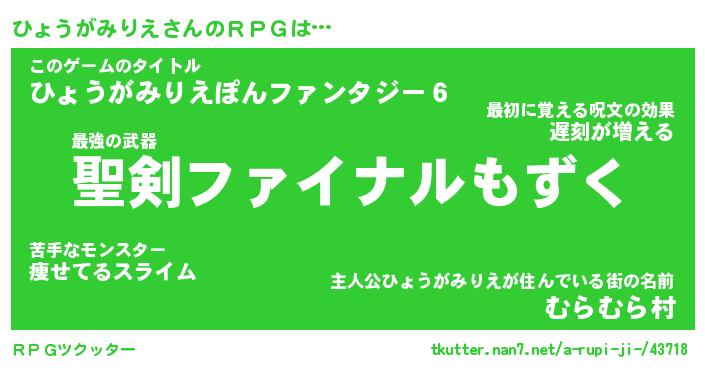 | 伝説のあだ名 | 『伝説の竜騎士ひょうがみりえ』 |