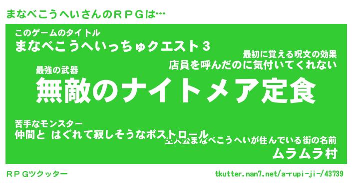 | 料理風あだ名 | 『節約★まなべこうへいと油揚げの玉子丼』 |