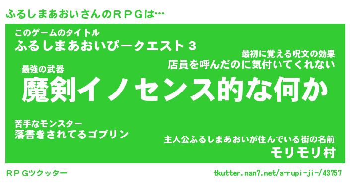 | 胡散臭い通販商品みたいなあだ名 | 『必ず成功する霊験あらたかなお札…その名も「ふるしまあおい」』 |