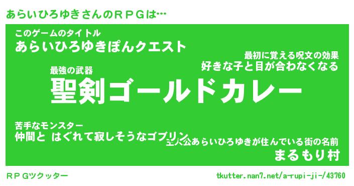 | ヒーロー風カッコイイあだ名 | 『スーパーアライヒロユキ』 |