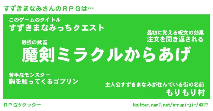 | ヘコむあだ名 | 『すずにー』『酢こんぶ』『すず太郎』 |
