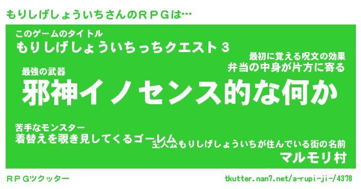 | 男性向けラノベタイトル風あだ名 | 『モリシゲショウイチアートオンライン』 |