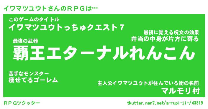 | 男性向けラノベタイトル風あだ名 | 『イワマツユウトアートオンライン』 |