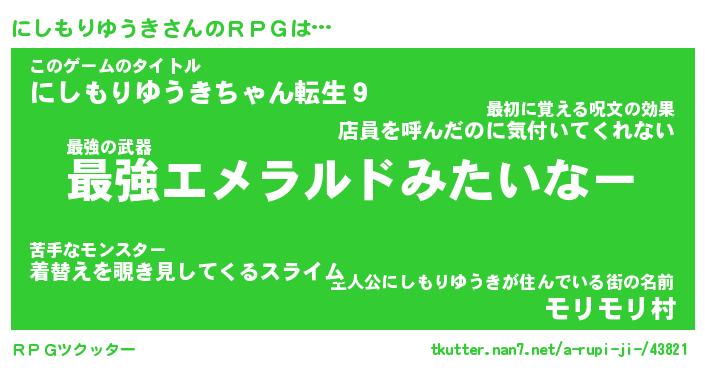 | 男性向けラノベタイトル風あだ名 | 『ニシモリユウキアートオンライン』 |