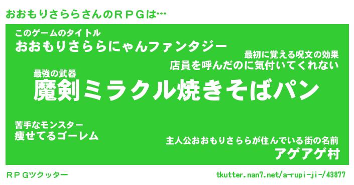 | 伝説のあだ名 | 『伝説の竜騎士おおもりさらら』 |