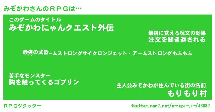| 男性向けラノベタイトル風あだ名 | 『みぞかわの憂鬱』 |