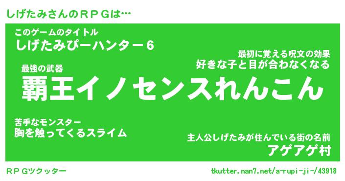 | ピコ太郎風あだ名 | 『シコ十郎』『ピシ八郎』『シゲ四郎』 |