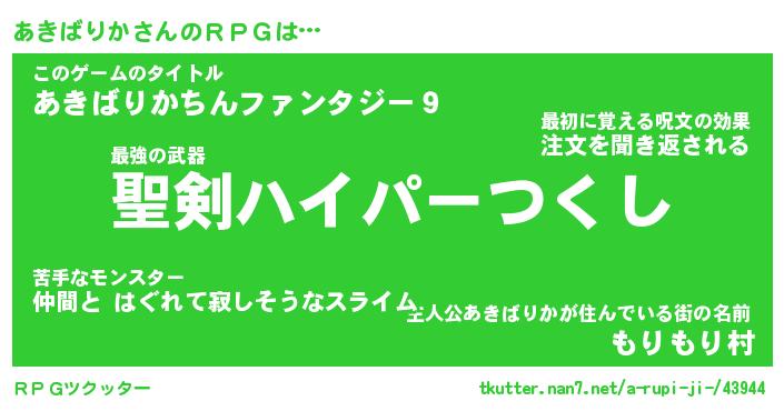 | ファンタジー風あだ名 | 『アキフェル』『エターナルアキバリカー』 |