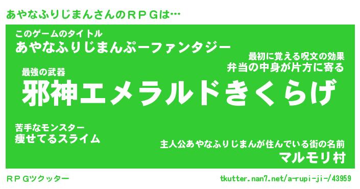 | 伝説のあだ名 | 『封印されしスナイパーあやなふりじまん』 |