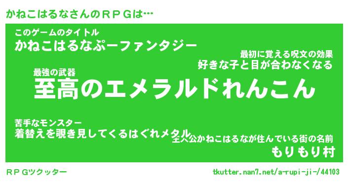 | 男性向けラノベタイトル風あだ名 | 『カネコハルナアートオンライン』 |