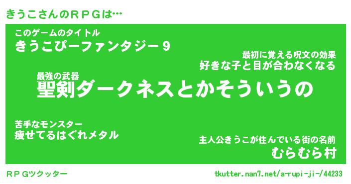 | 男性向けラノベタイトル風あだ名 | 『きうこの憂鬱』 |