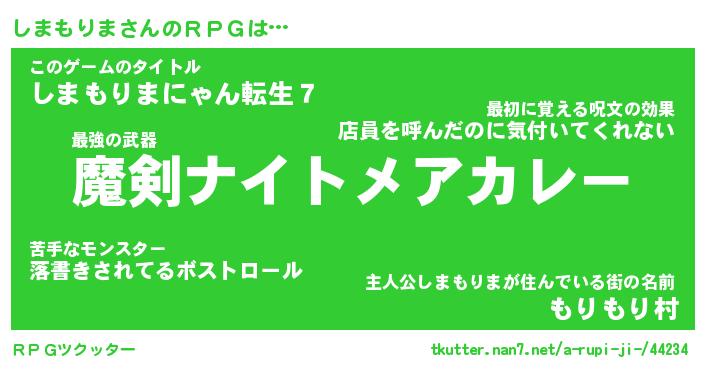 | ファンタジー風あだ名 | 『シマフェル』『エターナルシマモリマー』 |