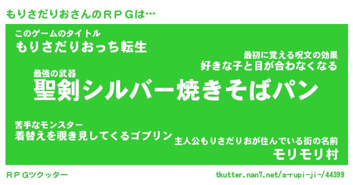| 胡散臭い通販商品みたいなあだ名 | 『必ず成功する水晶球…その名も「もりさだりお」』 |