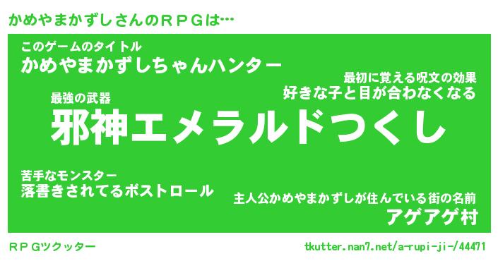 | 男性向けラノベタイトル風あだ名 | 『カメヤマカズシアートオンライン』 |
