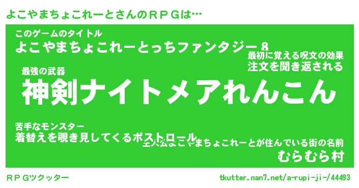 | 伝説のあだ名 | 『不死鳥のスナイパーよこやまちょこれーと』 |