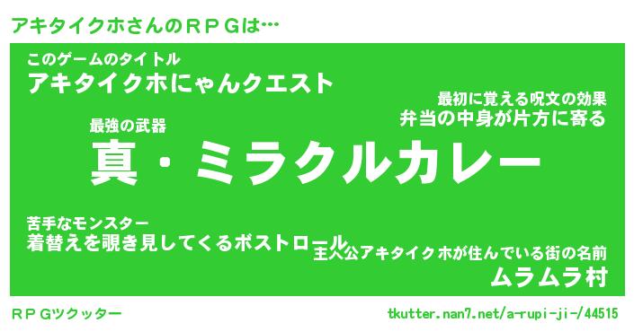| 男性向けラノベタイトル風あだ名 | 『アキタイクホアートオンライン』 |