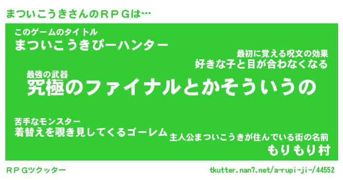 | 男性向けラノベタイトル風あだ名 | 『マツイコウキアートオンライン』 |
