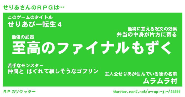 | 女子向けラノベタイトル風あだ名 | 『せりあ姫と円卓の騎士』 |