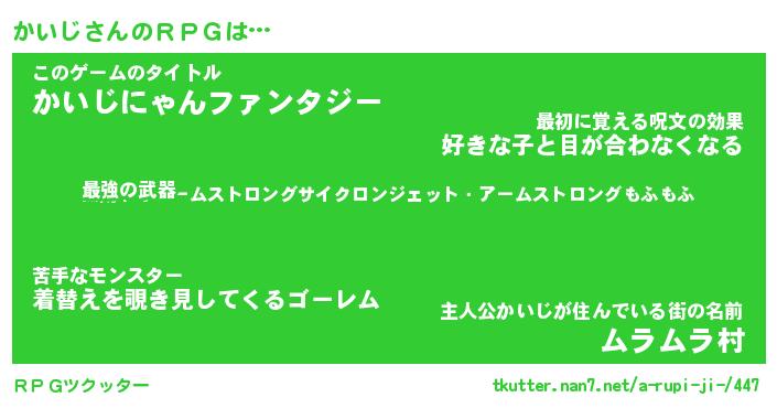 | 男性向けラノベタイトル風あだ名 | 『かいじの憂鬱』 |