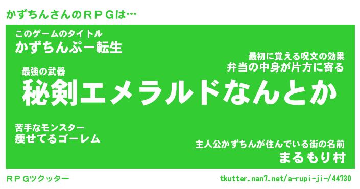 | 男性向けラノベタイトル風あだ名 | 『かずちんの憂鬱』 |