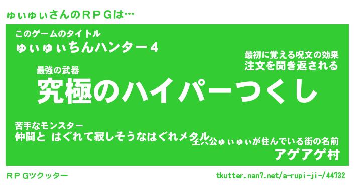 | 自動車の名前っぽいあだ名 | 『ュィティマ』『ュクア』『ュント』 |