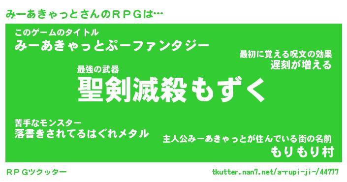 | 伝説のあだ名 | 『伝説のスナイパーみーあきゃっと』 |