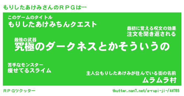 | 男性向けラノベタイトル風あだ名 | 『モリシタアケミアートオンライン』 |