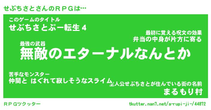 | 伝説のあだ名 | 『封印されし傭兵せぶちさと』 |
