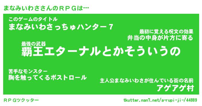 | 伝説のあだ名 | 『封印されし傭兵まなみいわさ』 |