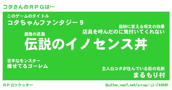 | 男性向けラノベタイトル風あだ名 | 『コタの憂鬱』 |