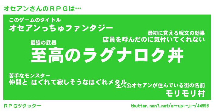 | 男性向けラノベタイトル風あだ名 | 『オセアンアートオンライン』 |