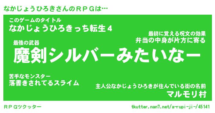 | 男性向けラノベタイトル風あだ名 | 『なかじょうひろきの憂鬱』 |