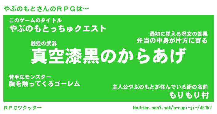 | 男性向けラノベタイトル風あだ名 | 『ヤブノモトアートオンライン』 |