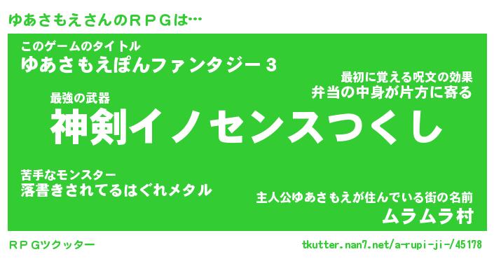 | 伝説のあだ名 | 『不死鳥のスナイパーゆあさもえ』 |