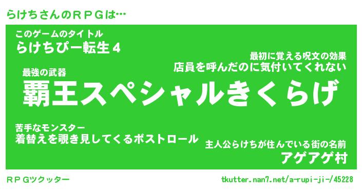 | ファンタジー風あだ名 | 『ラケフェル』『エターナルラケチー』 |