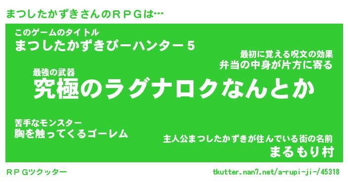 | 男性向けラノベタイトル風あだ名 | 『マツシタカズキアートオンライン』 |