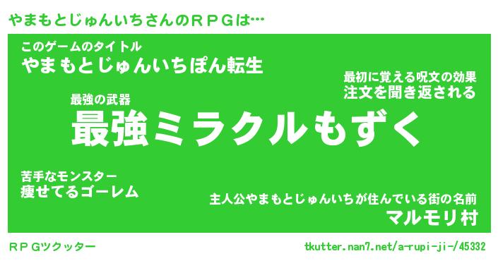 | 伝説のあだ名 | 『不死鳥の竜騎士やまもとじゅんいち』 |