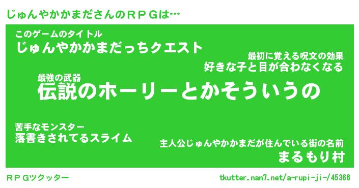 | 男性向けラノベタイトル風あだ名 | 『じゅんやかかまだの憂鬱』 |