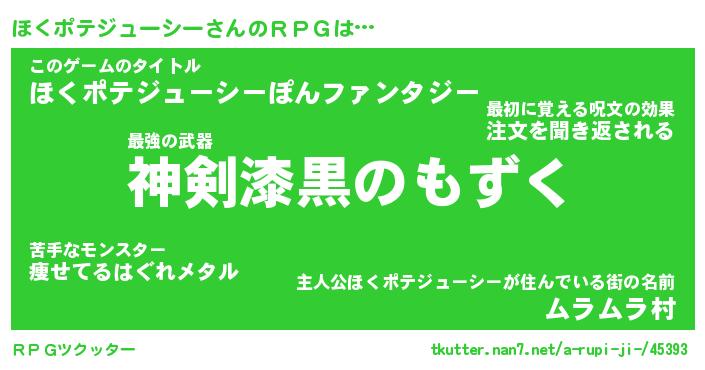| 男性向けラノベタイトル風あだ名 | 『ほくポテジューシーの憂鬱』 |