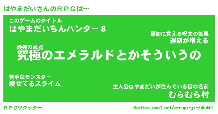 男性向けラノベタイトル風あだ名 | 『はやまだいの憂鬱』 |