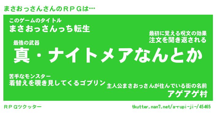 | 男性向けラノベタイトル風あだ名 | 『マサオッサンアートオンライン』 |