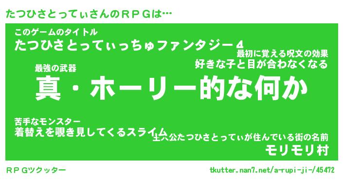 | 胡散臭い通販商品みたいなあだ名 | 『億万長者になれる水晶球…その名も「たつひさとってぃ」』 |
