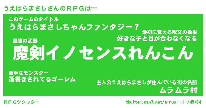 | 胡散臭い通販商品みたいなあだ名 | 『必ず成功する霊験あらたかなお札…その名も「うえはらまさし」』 |