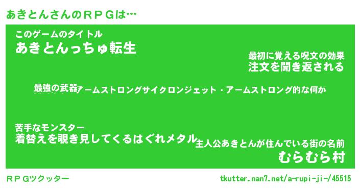 | 男性向けラノベタイトル風あだ名 | 『アキトンアートオンライン』 |