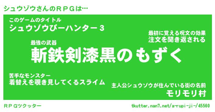 | 男性向けラノベタイトル風あだ名 | 『シュウゾウの憂鬱』 |