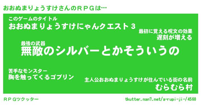 | 伝説のあだ名 | 『封印されし傭兵おおぬまりょうすけ』 |